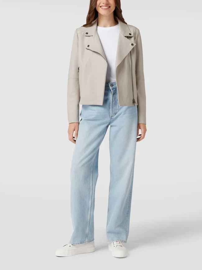 Die Bikerjacke von BOSS ist aus echtem Lammleder gefertigt und im Regular Fit gehalten. Sie zeigt sich in unifarbenem Design mit Haifischkragen.
