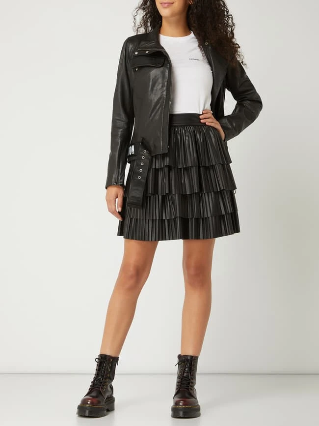 Die Lederjacke von Freaky Nation ist aus echtem Leder gefertigt und schmal geschnitten. Sie kommt im Biker-Look mit verdecktem Reißverschluss, Gürtel und Logo-Print.