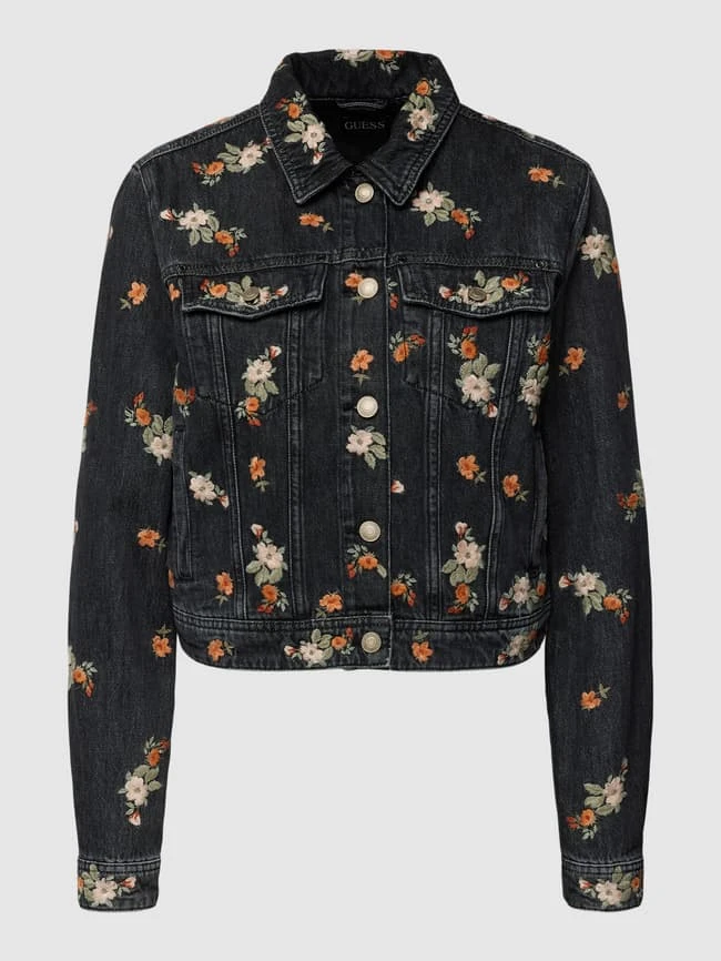 Die Jeansjacke von GUESS ist aus reiner Baumwolle gefertigt und gerade geschnitten. Sie zeigt sich mit floralen Stickereien und durchgehender Knopfleiste.