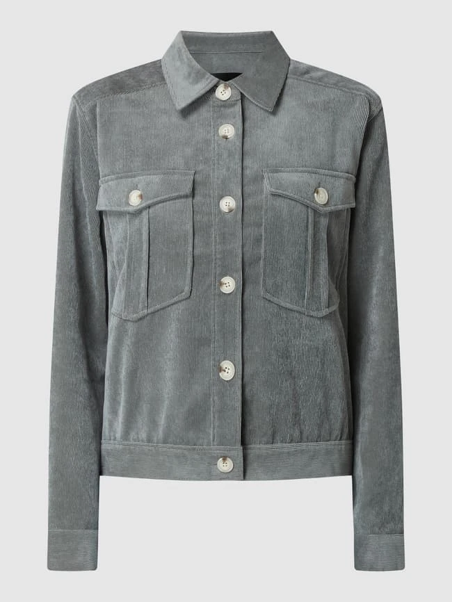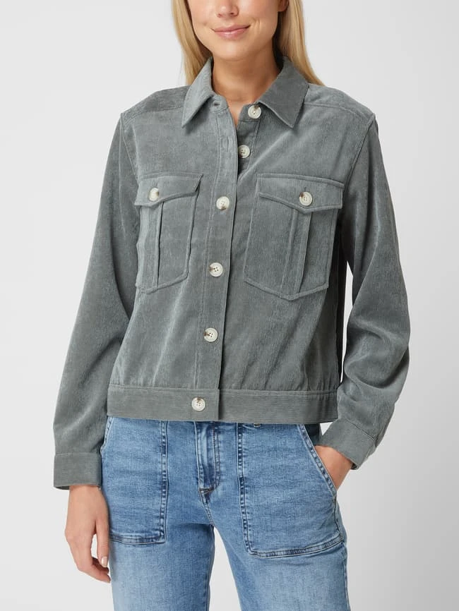 Die Jacke von OPUS ist aus einer Materialmischung mit Stretch-Anteil gefertigt und gerade geschnitten. Sie kommt mit Umlegekragen, Knopfleiste und Brusttaschen.