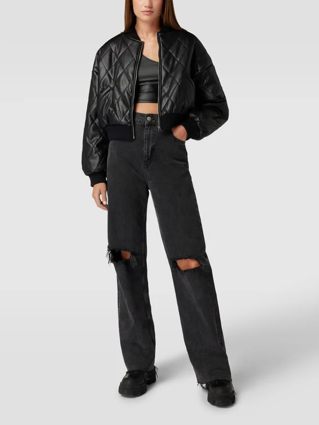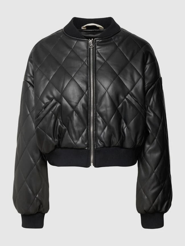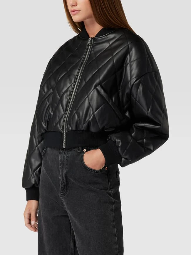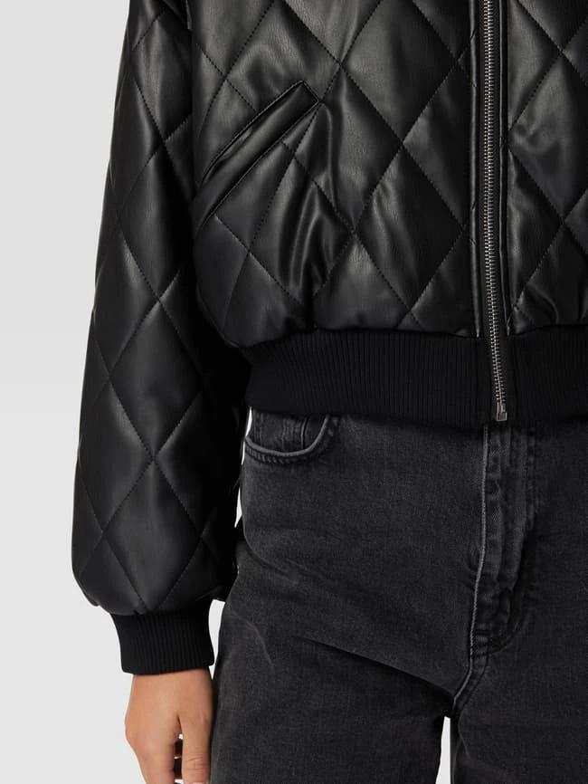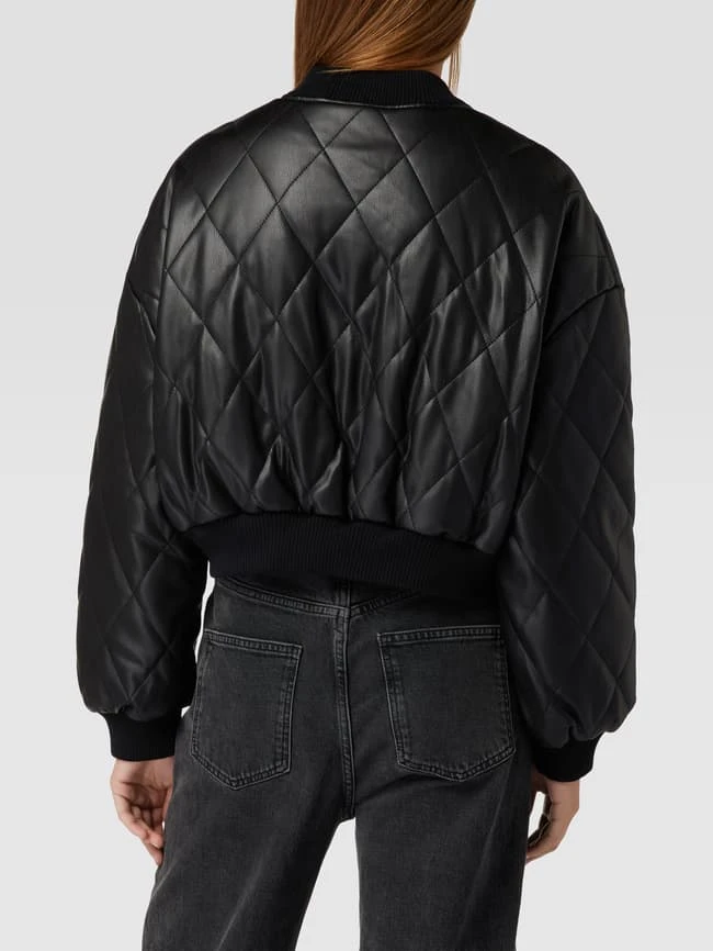 Die Bomberjacke von REVIEW ist aus strapazierfähigem Material gefertigt und locker geschnitten. Sie kommt in Leder-Optik mit Stehkragen und Steppnähten.