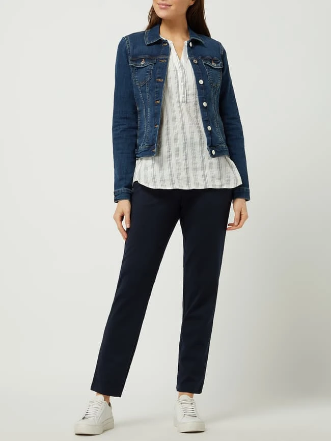 Die Jeansjacke von TOM TAILOR Denim ist aus Bio-Baumwolle und Elasthan gefertigt. Sie ist tailliert geschnitten und zeigt sich im Used-Look mit Knopfleiste.